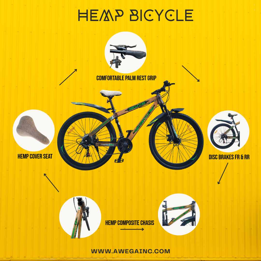 The Hemp Cycle is made of 75% hemp and other materials like (Steel, Aluminium, etc.)